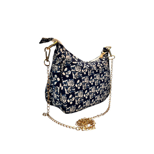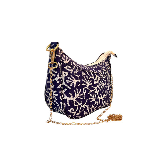 Ardan Blue Sling Bag In Floral Printed Cotton with Multiple Compartments & Pockets SKU71