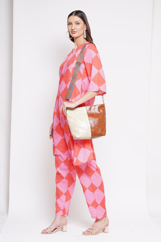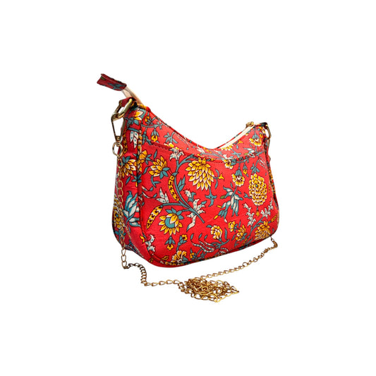 Ardan Pink Sling Bag In Floral Printed Cotton with Multiple Compartments & Pockets SKU69