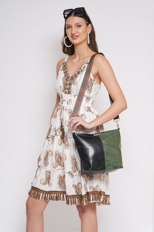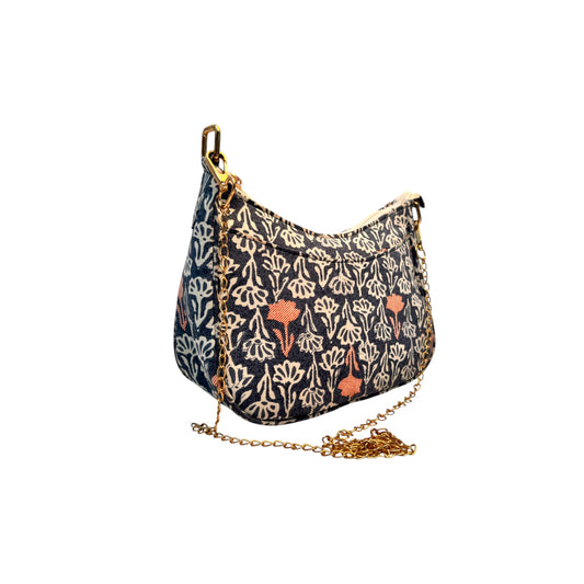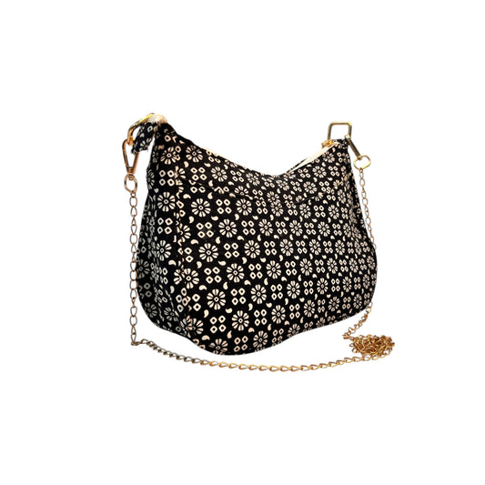 Ardan Black Sling Bag In Floral Printed Cotton with Multiple Compartments & Pockets SKU70