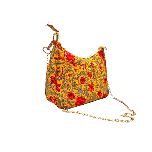 Ardan Yellow Sling Bag In Floral Printed Cotton with Multiple Compartments & Pockets SKU68