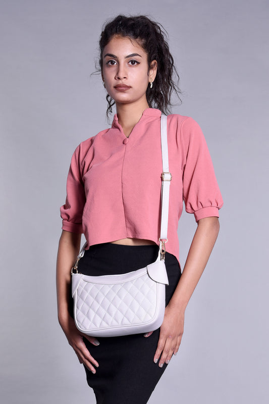 ARDAN Luxury Genuine Leather Large Quilted Handbag/Sling Bag for Girls/Women/Ladies Ivory Color AL30D